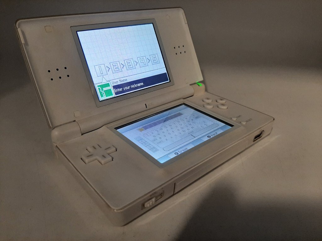 Konzole je originální Nintendo DS Lite o stáří cca 16 let. Nabíjecí third party USB kabel.